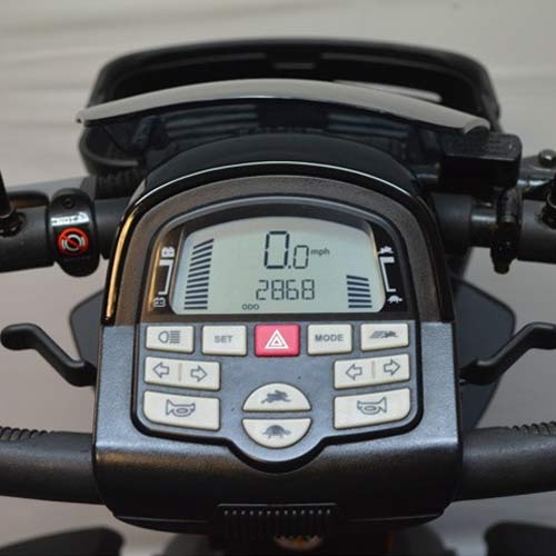 The Colt features all the high end features you could hope for: full suspension, sealed hydraulic brakes, extra large low-profile tires, advanced LED lighting, including directional signals, and quick adjust tiller.