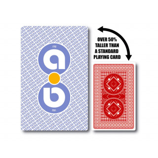Jumbo, hard-wearing, laminated paper playing cards, more than 50% taller than an average playing card.