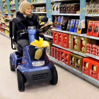 This Shoprider Traveso, the only scooter on the market like it, looks like a scooter which could be classed as a car, and that's what it is.