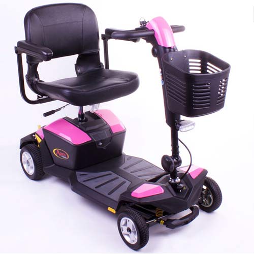 Pride Apex Rapid with luxury and convenient features like a wraparound delta tiller with a high level charging port, LED kerb light and a storage basket together with a compact, easy to transport design.