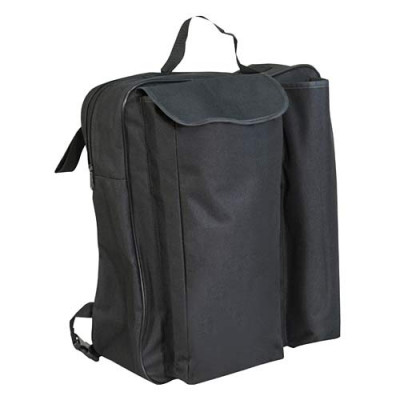 The Wheelchair Crutch Bag has been specially designed to fit neatly onto the rear of most standard wheelchairs with pram handles, and many electric scooters too, and provides a generous, zipped storage space for coats or jackets, shopping, medication, snacks, etc. It also features a zipped rear compartment and two deep pockets on the front, one with a flap closed with 'hook and loop tape'; these are ideal for your umbrella, crutch, walking stick or other items. The Wheelchair Crutch Bag is a practical and affordable wheelchair accessory and enables wheelchair users and their carers to safely carry more, while keeping their hands free. It is water resistant and features a large zipped top closure for ease of use. There is a sturdy carry handle on the top of the bag, fixed loops on either side, which easily slip over the pram handles on the wheelchair, and adjustable straps with buckles for flexible fastening options. Raised rubber feet on the base keep the bottom of the bag dry when it's resting on the floor.