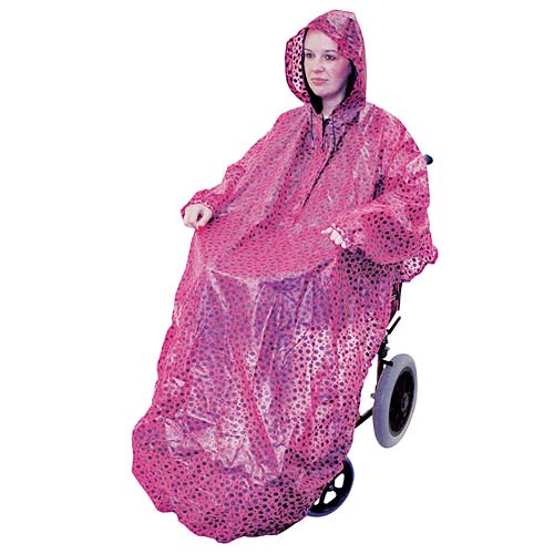 The Wheelchair Mac with Sleeves is the ideal garment to provide head to toe protection for you and your wheelchair, with soft elasticated cuffs on the sleeves to ensure that there is no chaffing on the skin, a neckline zip so the Wheelchair Mac can be put on or taken off with ease, plus an elasticated skirt for a snug fit and drawstring hood with spring clip fastening. The perfect Wheelchair accessory/garment for wheelchair users who require a high degree of independence and self-propel their wheelchair; the Wheelchair Mac with Sleeves is made from 100% waterproof fabric and provides complete protection from the elements. With rear slots for pushing handles. Available in Blue or Pink Polka Dot design.Suitable for machine washing at low temperature.